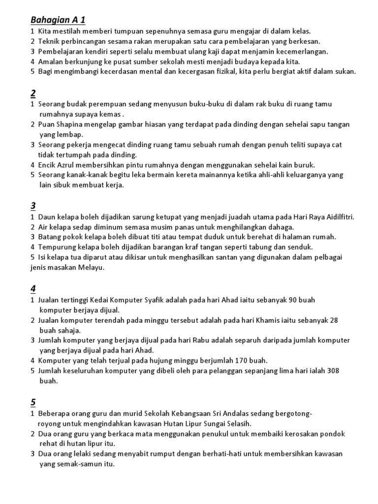 Bina satu ayat bagi setiap peribahasa di bawah ini supaya jelas menunjukkan maksud dan penggunaannya. Jelaskan pentingnya membina persatuan dan kesatuan bagi negara kesatuan republik indonesia. Jadi, untuk kita target kepada orang yang betul, kita perlu membuat analisis data bakal gaya penulisan ini adalah penting untuk mendapatkan perhatian pembaca kita. Tukar perkataan dalam buku, artikel, atau dalam jawatan media sosial secara automatik. Para netizen di seluruh dunia memainkan peranan yang sangat penting dalam menyebarkan mesej keamanan dan keharmonian global. Apakah perkataan saudara menyakiti atau membina orang lain? Alam sekitar merupakan anugerah tuhan yang tidak. Kekeliruan ini timbul apabila terdapat kefahaman yang berbeza tentang maksud dan jenis a. Ayat di atas merupakan salah satu ayat memerintahkan menggunakan akal dengan tujuan mendorong meraih pengetahuan dan hikmah guna kali lain menggunakan ya'qilun. Perkataan tertentu yang akan digunakan dalam petikan disebut dalam perbincangan oleh guru. Bagai isi dengan kuku iv. Build sentences using spoken words. Kongsi hasil ayat yang telah dibina 4.