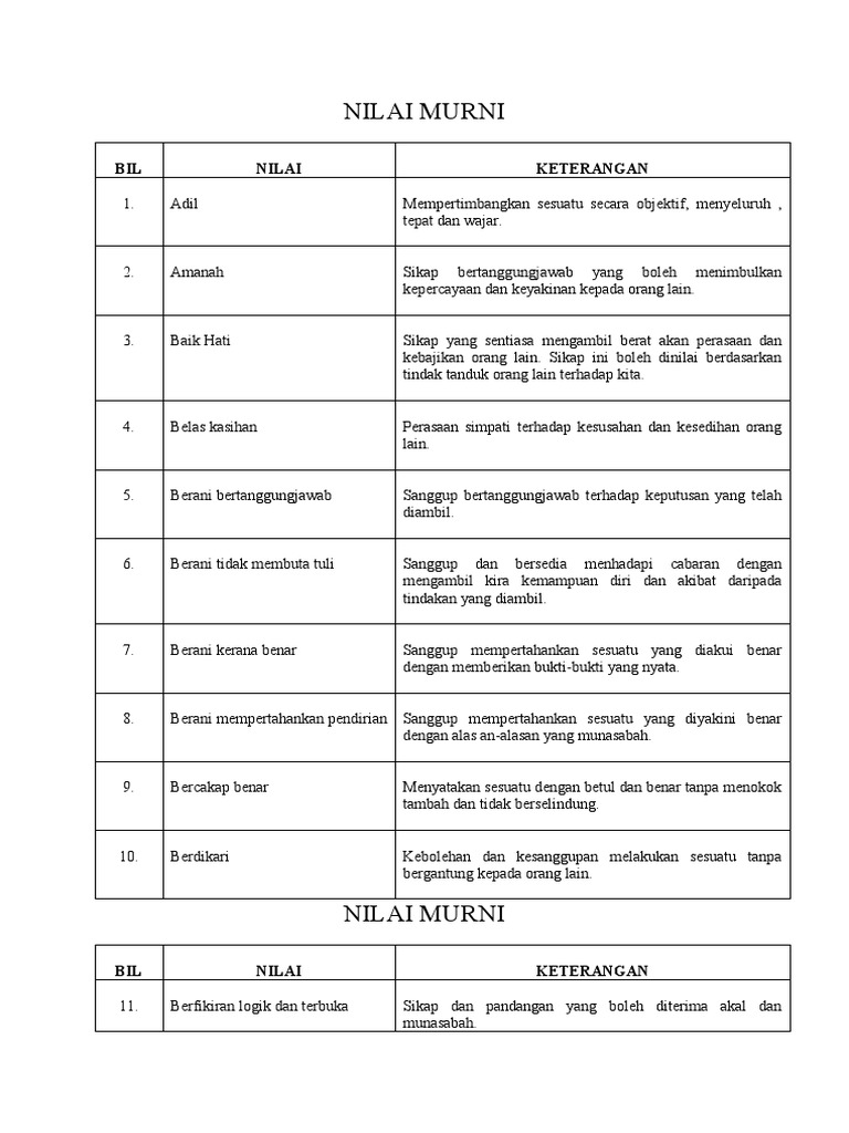 Pengertian nilai moral menurut para ahli, jenis, dan contohnya dalam keseharian secara lengkap dapat kalian baca di web dosensosiologi.com. Remember all the sleepless nights we spent memorising all the nilai murni for spm? Nilai moral kaitannya dalam hubungan manusia dalam masyarakat dibedakan mejadi: Nilai moral baik merupakan suatu nilai yang dikaitkan dengan kesesuaian diantaaraa harapan serta juga tujuan hidup manusia didalam menjalankannya, bisa ditinjaun dari kaidah sosial dari masyarakat. Nilai murni pendidikan moral bidang pembelajaran 1 :